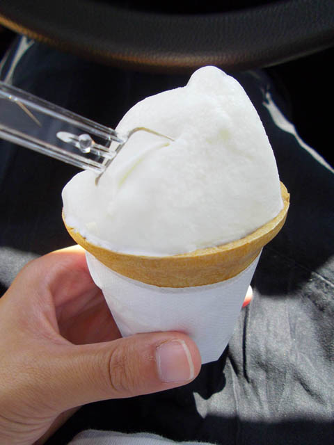 味は普通のミルクアイス。そういえば、甘く味付けされたかんぴょうは食べた事があるけど、かんぴょうそのものの味って知らないなぁ。