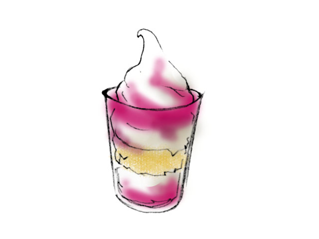 サンデーはストロベリーとチョコの2種類(通常のソフトクリームもあります)。今回はさっぱりとストロベリーを選びました。