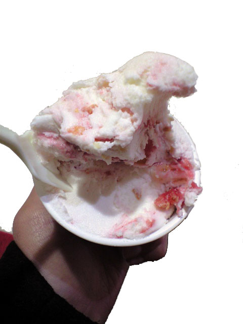 ベースのジェラートは、ミルクの味、濃さ、甘さのバランスが丁度いい♪練り込まれているイチゴジャムも、程よい量。多くはないけど、物足りなくもない。