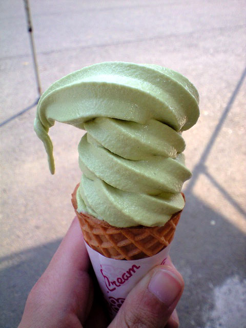 さるなしソフトと空芯菜のソフトクリームが半々になった、普通のミックスソフトを想像していたのですが、出てきたのは、さるなしと空芯菜を混ぜたという意味でのミックスソフト。
