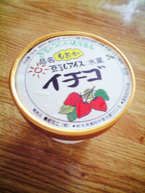 真岡市の町中にある物産会館。お店の前には豆乳アイスののぼりが。 和雑貨やおせんべいなども販売しています。 豆乳アイスはプレーンからラムレーズン、むらさきいもなど、様々なフレーバーが有りました。その中から、今回選んだのはイチゴ。真岡さんのイチゴを使用しているそうです。 食べてみると、程よくふんわりとした口当たりに、強めの豆腐の風味。豆腐をそのまま使用しているかのような味で、バニラとは全く違う味わいです。 イチゴの味はほのか。少しですがプチプチとした食感も楽しめます。 蓋には氷菓と書かれていますが、アイスクリームと変わらないまったりとした口当たりで、優しい味でした。豆乳だから脂肪分が少なめなのかな? ★★★★★ 応援クリックお願いします! ーーーーーーーーーーーーーーーーーーーーーーーーーーーーーーーー <豆乳アイス/真岡物産会館> ¥250 アイスケースの上に木のスプーン有り イートインスペース有り 駐車場有り(市営) ーーーーーーーーーーーーーーーーーーーーーーーーーーーーーーーー