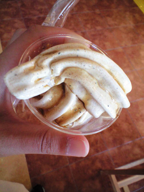 その中から、今回はきな粉と黒蜜のソフトを食べてみました。