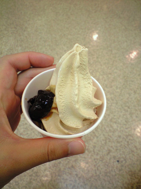 写真では小さく見えますが、普通のホットコーヒー用の紙カップにしっかりとソフトが巻かれていました。コーンを食べている人を見ても、量はしっかりとあります。