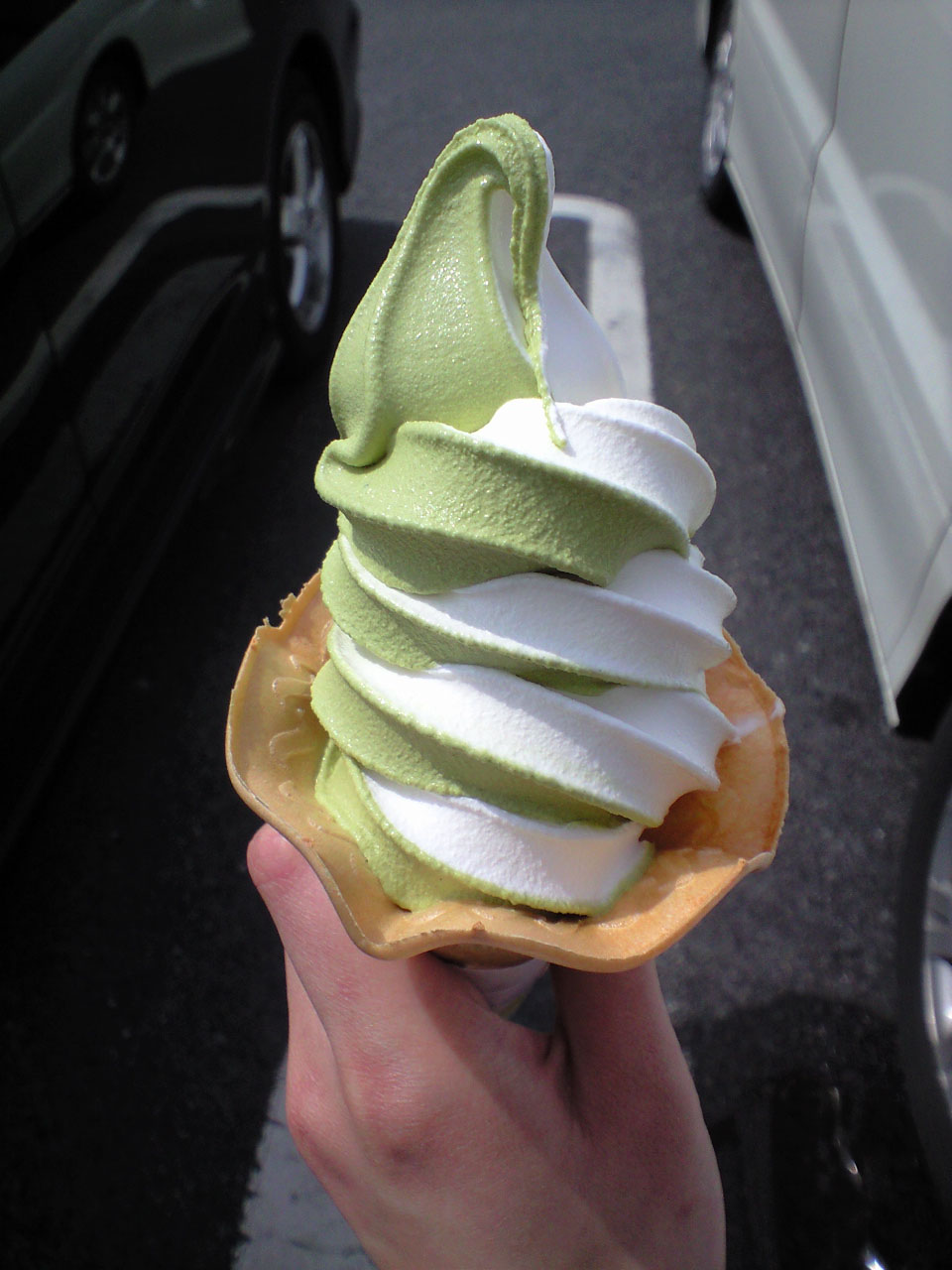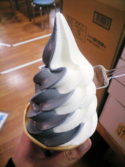 2色なのに、なんともモノトーンなソフトクリーム…。