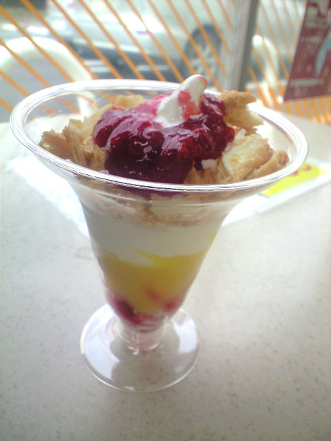上にかかっているソースは、少し果肉感のあるイチゴソース。思った程甘みが強くなく、食べやすい物でした。
