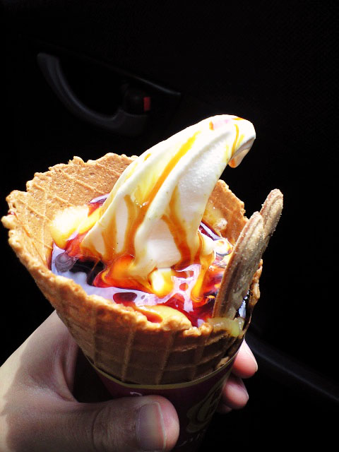 そして、予想通り、ソフトの量が多い!大きなワッフルコーンの底までしっかり入っていました。