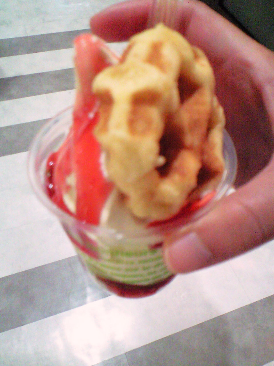 トッピングのワッフルは、甘くてフワフワ。嬉しい事に、ほんのり暖かい!
