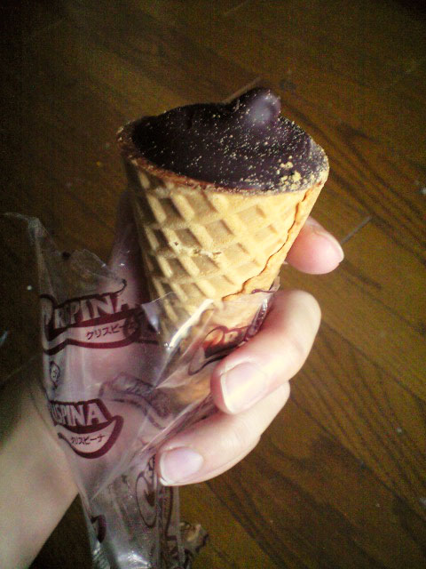 バニラアイスも、チョコレートも、コーンもクリスピーナ ジョイフルと同じ物。ただ、サイズが小さいせいか、コーンの存在感を強く感じました。個人的には、もう少し薄めのコーンの方が好みかな。ザクザクした食感で美味しかったけどね。