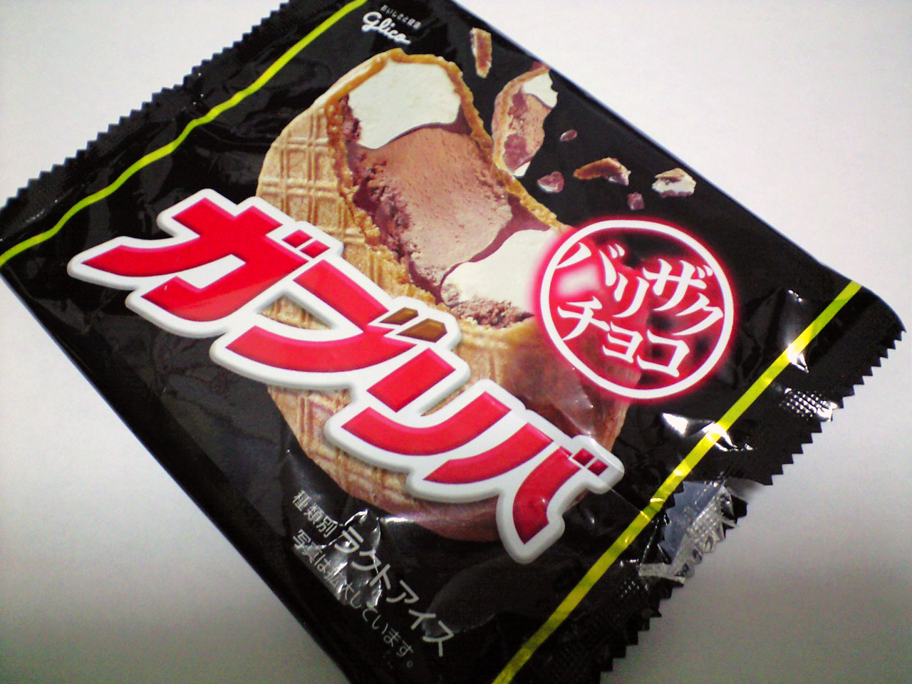 バニラアイスとチョコアイス、モナカアイスの間に、パリッとしたチョコレート。さらにそのチョコの中に、ザクザクのチョコクッキー。チョコの味がとにかく強くて、食感もゴリゴリ。