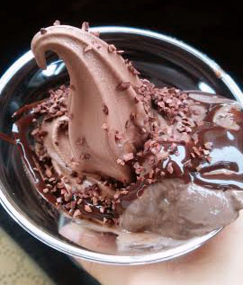とろーりチョコソースは濃厚ですが、甘さ控えめ。プリンともソフトクリームともよく合います。
