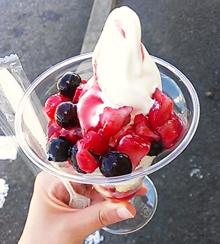 ちょっとチープ感はありますが、ソフトクリームとの相性も良くて、美味しかった。