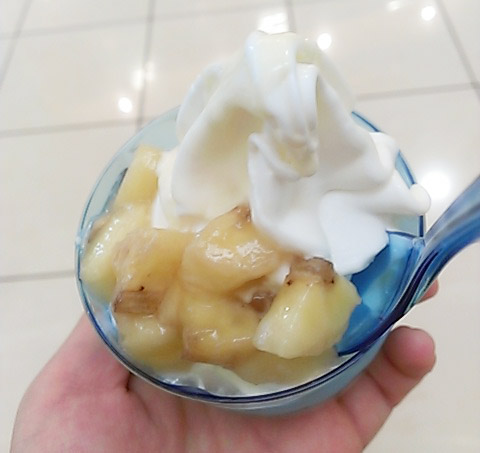 ソースは群馬名物、焼き饅頭の味。甘めでミルクソフトと一緒に食べても違和感がありません。