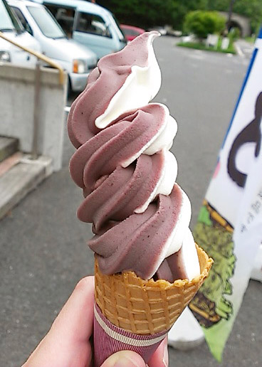 ソフトクリームはブルーベリー。季節に寄ってフレーバーが変わるようです。