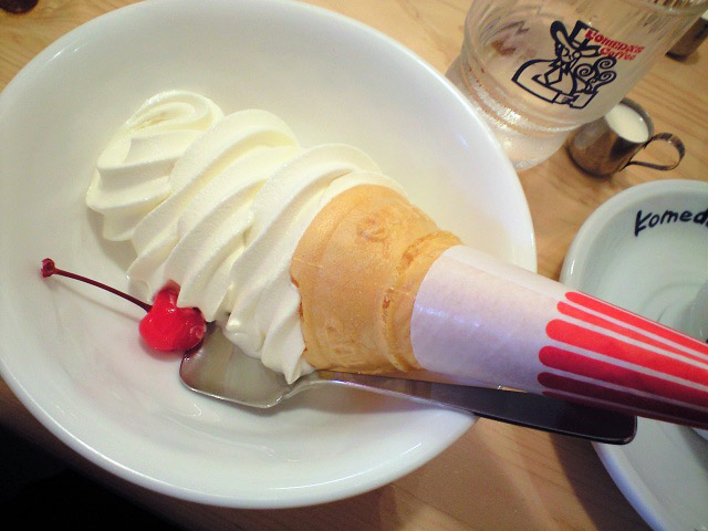 シロノワールが有名なコメダ珈琲。行く度にミニシロノワールを注文していますが、今回はずーっと気になっていたソフトクリームを注文してみました。