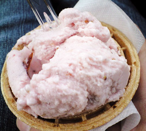 こちらのジェラートははジャージー牛乳を使用しているそうです。口当たりはあっさりで、素材の味が生きた酸味の残るイチゴ味。乾燥イチゴチップのような物も入っていました。